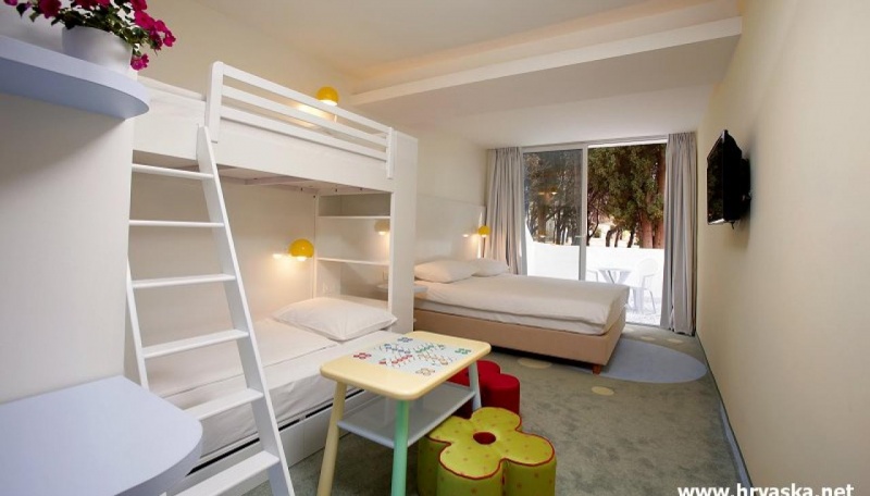 Družinska soba (povezane sobe): pograd, vsaka soba z balkonom, tuš, Klima, Sat TV, velikost sobe: cca. 45-55 m2