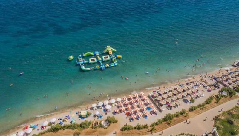 PLAŽA: 50 m lastna, urejena, droben pesek, primerna za otroke, tuši na plaži, možnost najema senčnikov in ležalnikov, kabine za preoblačenje.