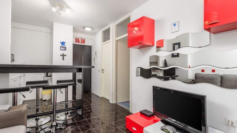 Pred nekaj leti je bil popolnoma obnovljen, opremljen z novejšim in modernim pohištvom in le 5 minut hoje od ljubke prodnate plaže. Stanovanje je približno 32m2 in je sestavljeno iz kuhinje, jedilnice in dnevne sobe, vse v enem prostoru, dvoposteljna soba s francosko posteljo za dve osebi, tuš / WC, balkon. Parkirno mesto (brezplačno) v ulici.