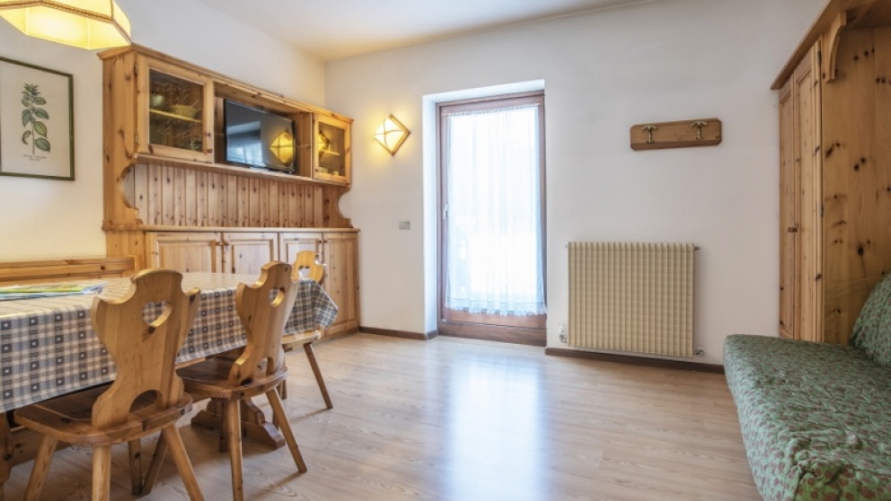 1/4 apartma dvosobni:  dnevni prostor s kuhinjsko nišo, jedilnim kotom in raztegljivo zakonsko posteljo, soba z dvema ležiščema, TWC. Nekateri apartmaji imajo 5. ležišč (predhodna najava).
