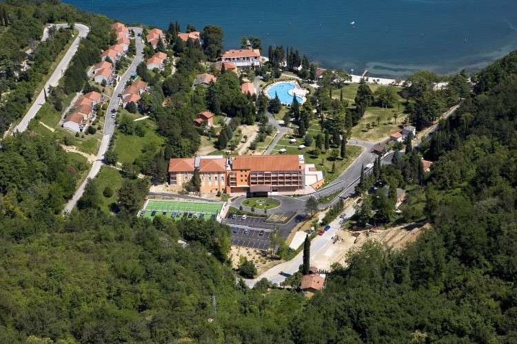 Lega: med Izolo in Portorožem, sredi zelenja in Krajinskega parka Strunjan, blizu solin, ob plaži, 1 km od Strunjana, plaža je travnato-betonirana, delno tudi prodnata.