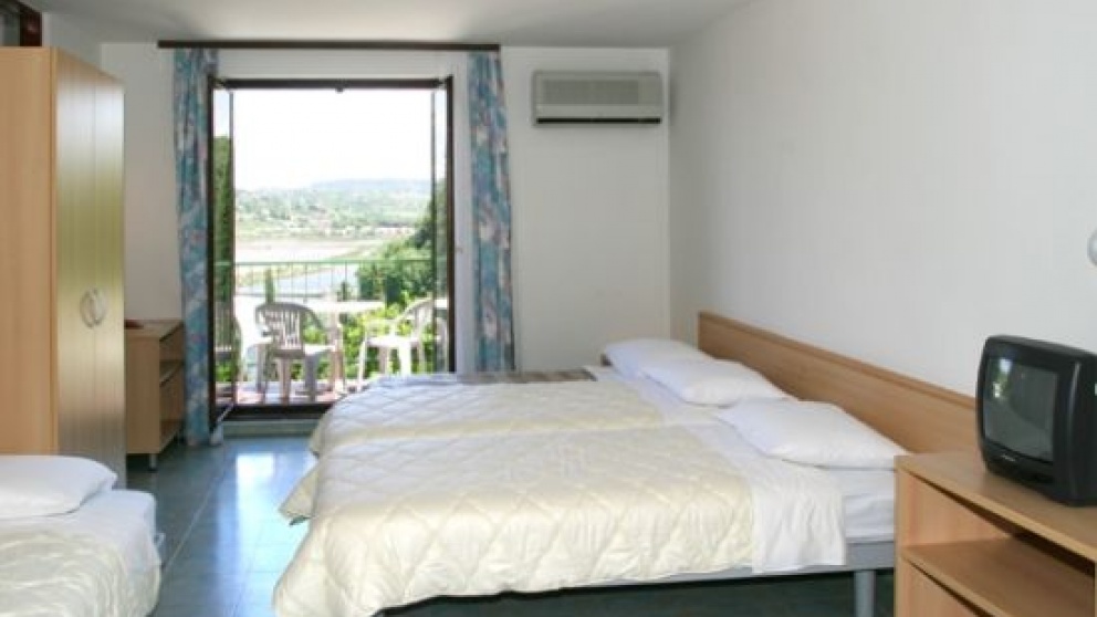 - 1/5 APP klima: apartma za največ 5 odraslih oseb; 42 m²; dnevno-spalni prostor s tremi ležišči in dodatnim ležiščem, dvoposteljna soba, klimatska naprava, kuhinjska niša, kopalnica s prho, sušilnik za lase, sat. TV, telefon, terasa ali balkon