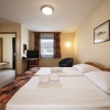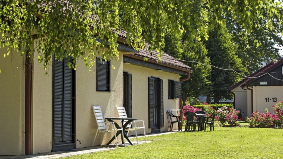 Mini naselje bungalovov ima skupaj 20 sob, ki so kot hotelske, vendar le korak do zelenice. Badminton in frizbi zdaj nista več vprašanje. Ko se vam zahoče bazenov, skočite v 200 m oddaljen Termalni park s tobogani, sicer pa se v mirnem okolju hišk potopite v najljubšo knjigo ali na dekici opazujte oblake.
