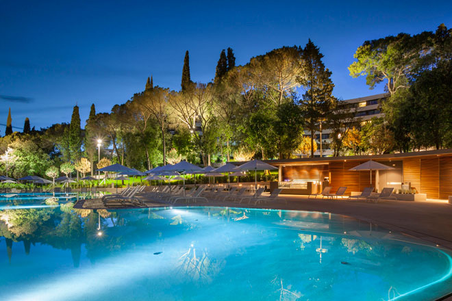 Bazeni: Notranji sladkovodni bazen ima površino 169 m² (37° C) in z udobnimi prostori ter ležalniki za počivanje nudi popolno sprostitev. Poleti je na voljo tudi atraktiven zunanji bazen z morsko vodo in ločenim otroškim bazenom. Na 1700 m² se razprostira Wellness & Spa Lone: »potopljene sobe«, savne, relax zona, zunanji vrt, bauty zona, fitnes, terapevtski prostori, masaže, kozmetični tretmaji.