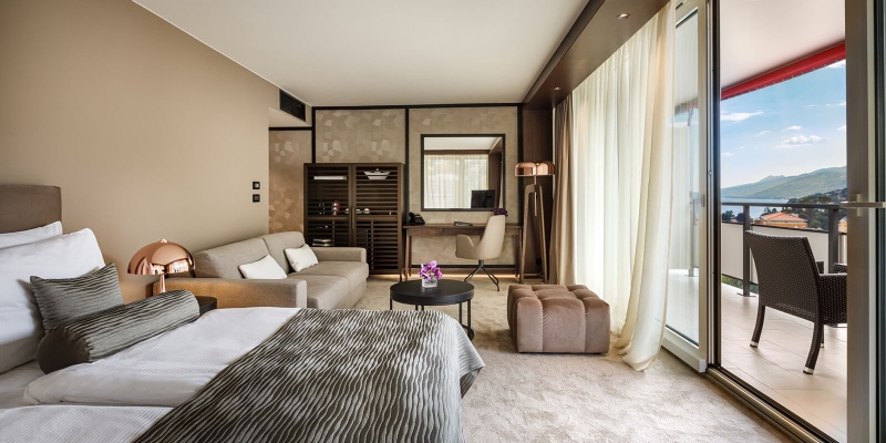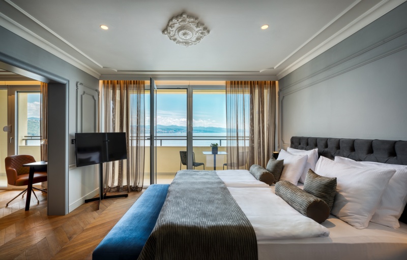 - 1/2+1 TWCBM superior: dvoposteljna soba, 26 m²; kopalnica s kadjo, sušilnik za lase, LCD TV, klimatska naprava, telefon, minibar, sef, brezplačen WiFi, balkon, morska stran in možnost dodatnega ležišča (omejeno število)