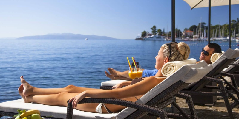 · brezplačna uporaba ležalnikov in sončnikov na plaži in ob bazenu (odvisno od razpoložljivosti)