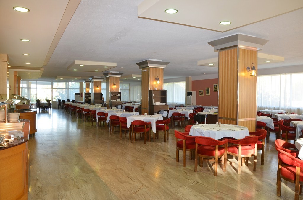 Hotelska ponudba: prijeten hotelski kompleks v štirinadstropni glavni in petih do tri nadstropnih stavbah bungalovskega tipa, skupno 510 sob; restavraciji (glavna, tematska), taverna, okrepčevalnica, bar; dva bazena, otroški bazen; zdravniška oskrba, dvigala, trgovinice, internetni (plačilo) in tv kotiček, brezžični internet pri recepciji (plačilo).