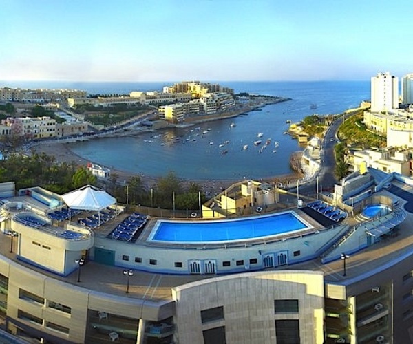 Lega: Drugačen sodoben hotel v St. Julian'su je v zgornjih treh nadstropjih istoimenskega nakupovalno‑zabaviščnega središča, za katerega je značilno živahno nočno življenje, zato bo še kako primeren za tiste, ki venomer iščejo akcijo in zabavo. Do zaliva St. George's z urejeno peščeno plažo je 200 metrov, do urejene skalnate plaže Dragonara Reef Club (vstopnina) pa približno 500 metrov.