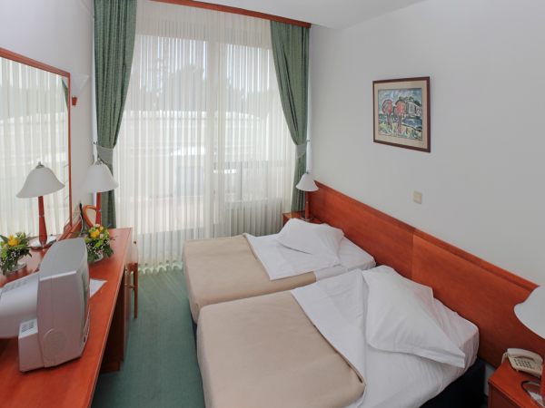 Lega: zdraviliški hotel v centru Makarske, s prekrasnim pogledom na zaliv, v borovem gozdičku, 15 minut hoda do centra mesta.