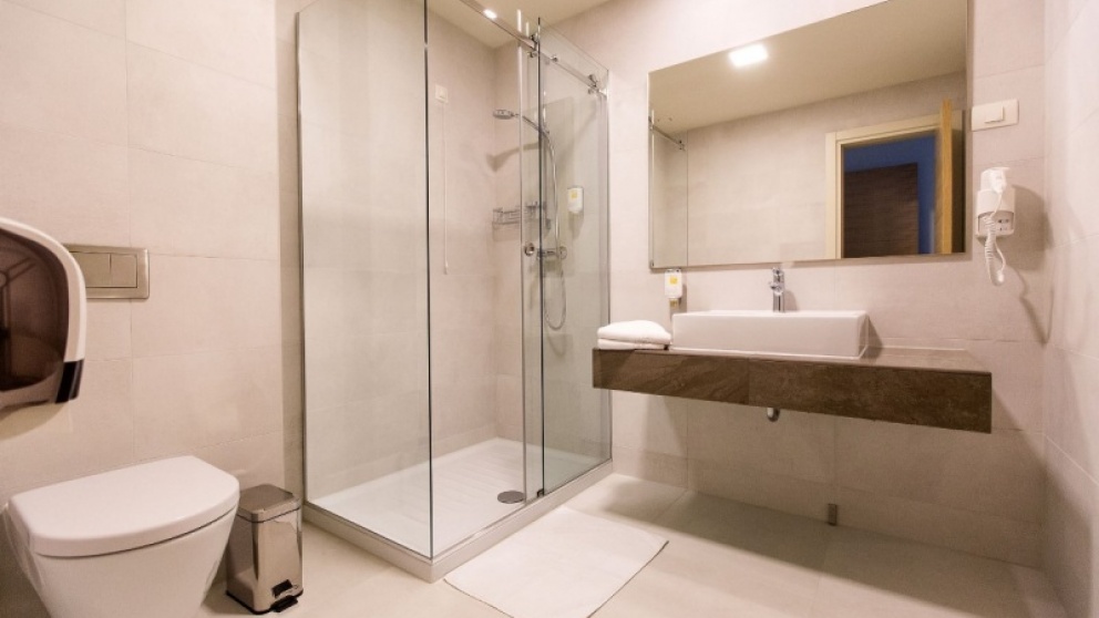 Sobe: kopalnica, prha, kad, internetni dostop, minibar, klimatska naprava (centralna regulacija), sef, balkon ali terasa