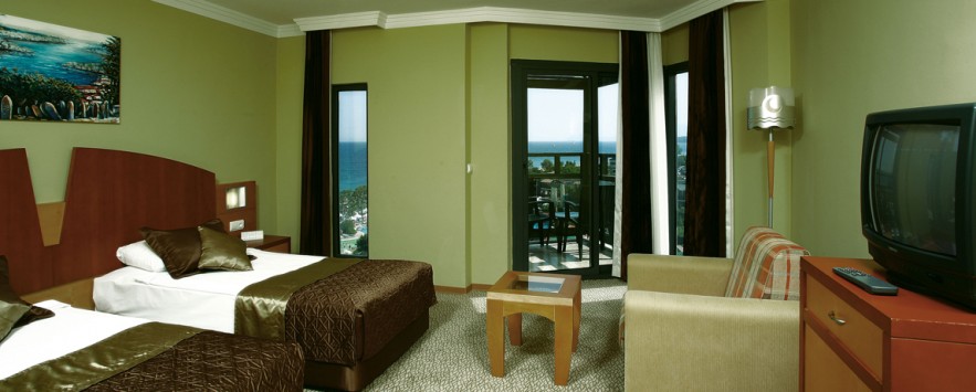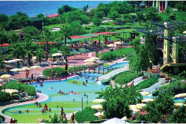 Storitev: ULTRA ALL INCLUSIVE (• samopostrežni zajtrk od 7.00 do 10.00 • pozni zajtrk od 10.00 do 11.00 • samopostrežno kosilo od 12.30 do 14.30 • samopostrežna večerja od 18.45 do 21.15 • dietni bife pri kosilu in večerji • turške palačinke od 11.00 do 16.00 • različni prigrizki od 12.00 do 16.00 • pice, špageti od 13.00 do 17.00 • kava, čaj, pecivo od 12.00 do 17.00 • sladoled od 13.00 do 17.00 • nočni prigrizek od 22.30 do 03.00 • lokalne alkoholne in brezalkoholne pijače in določene uvožene pijače 24 ur na dan v različnih barih z različnim obratovalnim časom • bar na plaži je odprt od 10.00 do 18.00 • pijača v diskoteki od 23.00 do 02.00 • vsak dan v mini baru pivo, mineralna voda, voda, sok, brezalkoholne pijače • likanje največ dveh kosov oblačil po osebi • nemotorizirani vodni športi • uporaba tenis igrišča - loparji in žogice niso vključeni, sqush, balinanje, ure plesa, pikado • sef v sobi • brezžični internet • otroško igrišče, mini disko, mini klub • vstop v turško kopel, savno • fitnes • uporabo bazenov in vodnega parka s tobogani • ležalniki in senčniki na plaži in ob bazenu do zasedbe mest • izposojo kopalnih brisač • bogata hotelska dnevna in večerna animacija za odrasle in otroke).