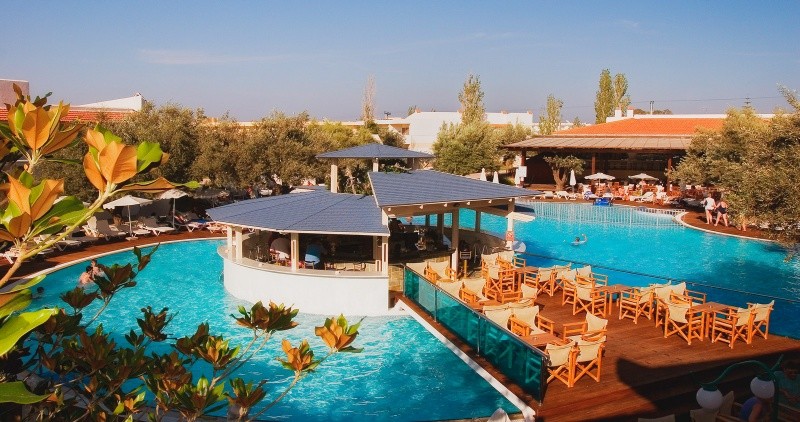 HOTELSKA PONUDBA: 155 sob v glavni stavbi in 12 stranskih pritličnih stavbah; samopostrežna restavracija z grškimi in mednarodnimi jedmi, »ala- carte« restavracija, več barov, bar s prigrizki ob bazenu; zunanji bazen s sladko vodo in ločenim delom za otroke, obdan z bujnim mediteranskim vrtom, senčniki in ležalniki ob bazenu, kopalne brisače (kavcija), ob plaži vse za plačilo; manjši spa center (nega obraza, manikura, pedikura, masaže), frizer; TV soba, igralnica, trgovina, konferenčni prostor, internet kotiček, brezžični internet v glavnih prostorih hotela brezplačno, možnost najema sefa.