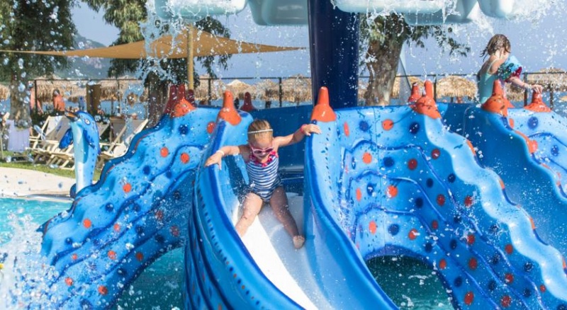 Lega: Največji in najbolj poznan hotelski kompleks na otoku Krfu se razprostira na zeleni ravnici tik ob eni izmed najbolj priljubljenih peščeno-prodnatih plaž na jugovzhodni obali otoka, ki se ponaša tudi z modro zastavico EU za urejenost in čistost. Do središča vasic Messonghi in Moraitika, kjer je mnogo trgovin, lokalov, tavern in barov, je le 500 m, do glavnega mesta otoka pa je 23 km.