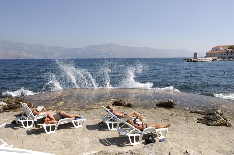 PLAŽA: prodnata (200 m) , skalnata, betonirana ( pred hotelom).