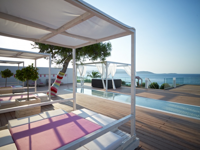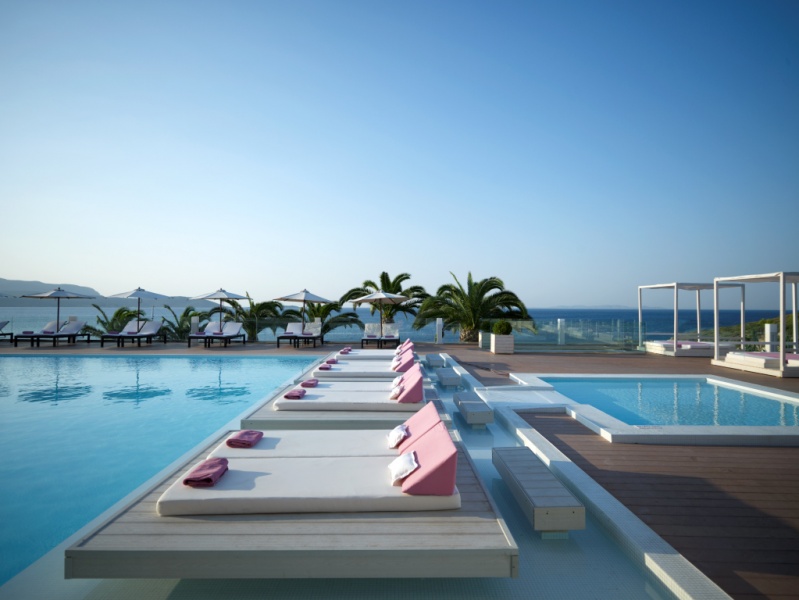 Ponudba: Hotel z 92 sobami, razdeljenimi med glavno zgradbo, in 28 bungalovi ima sprejemno dvorano z recepcijo in brezplačnim WiFi-jem, lounge bar Esperos, restavracijo Panorama International, TV-sobo, konferenčno dvorano, minimarket in internetni kotiček. Spodaj, malce nad plažo, so še terasa za sončenje s tušem in kabino za preoblačenje, pool bar Lush, restavracija Simplicity, open air intimna restavracija π2 Theory Gourmet in beach club Cavo Pountes. Za rekreacijo sta na voljo travnato igrišče za odbojko in igrišče za tenis. Vreden obiska je tudi spa Adam & Eve, kjer lahko gostje brezplačno uporabljajo notranji bazen, jacuzzi, savno in fitnes, za doplačilo pa jim je na voljo še frizerski salon in pestra paleta različnih lepotilnih in sprostitvenih tretmajev. Brezplačni ležalniki in senčniki ob bazenu in na plaži. Brezplačne kopalne brisače. 24-urna sobna postrežba. Vsaj štirikrat na teden poseben dogodek.