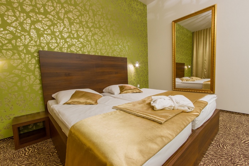 Sobe: 68 sodobno opremljenih sob; tuš/ WC, TV, radio, telefon, minibar, sef, sušilec za lase,priključkom za internet (brezplačen internet) in klimatska naprava, 8 nadstandardno opremljenih Suit s savnami, whirlpooli in okroglimi posteljami – mini wellness razvajanje v sobi.