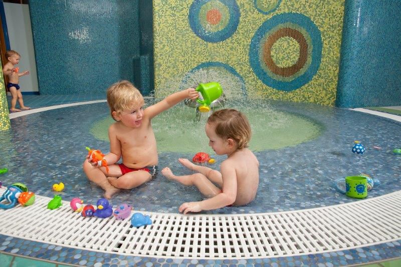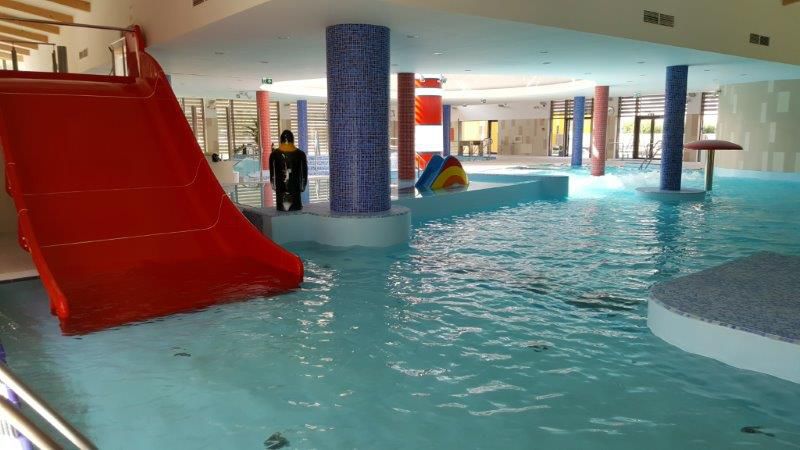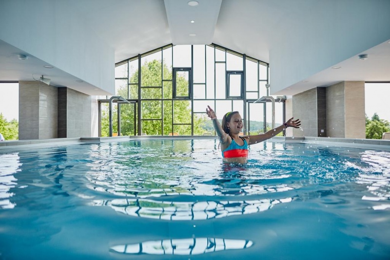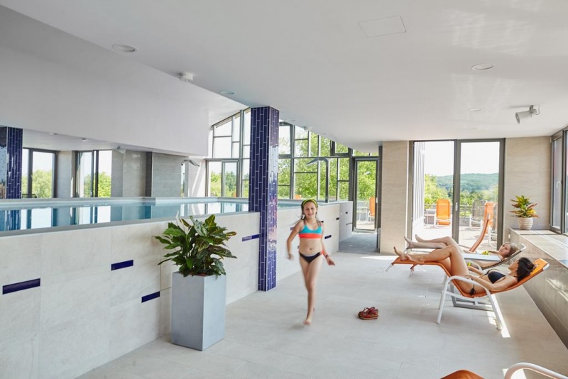 Hotel je neposredno povezan s pokritim delom termalnega kopališča, kjer bodo na svoj račun prišli tako starši kot tudi najmlajši, saj jim je poleg kompleksa bazenov (5 notranjih bazenov – od 33 m velikega plavalnega do termalnih bazenov s temperaturo vode do 38°C ) na voljo doživljajski del term z igralnimi elementi. Čaka jih velik 75 metrov dolg tobogan, družinski tobogan in bazen za čofotanje s toboganom za malčke. Medtem lahko sami najdete sprostitev in regeneracijo v doživljajskem bazenu in jacuzziju z različnimi masažnimi efekti, ali pa obiščete hotelski wellness s čudovitim razgledom in različnimi savnami (turška, finska, aroma, infra). V poletnih mesecih se vodna zabava preseli na zunanje kopališče (5 zunanjih bazenov) sredi čudovite narave in zelenih površin.