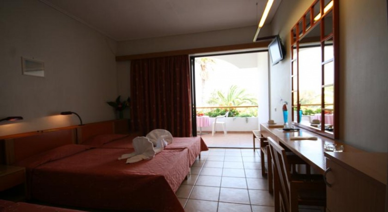 Hotelska ponudba: na nekoliko mirnejšem kraju, sredi urejenega vrta, dvonadstropen kompleks treh stavb iz novejšega in starejšega dela, skupno 248 sob, prenovljen leta 2006; restavracija, okrepčevalnica, bar, taverna na plaži; bazena, otroška bazena, jacuzzi; konferenčna soba, mini market, sef na recepciji (plačilo), dvigala, internetni in tv kotiček, brezžični internet pri recepciji (plačilo).