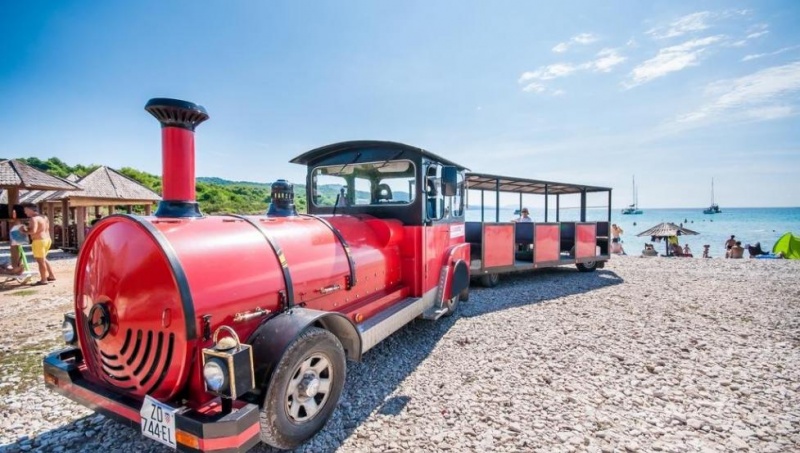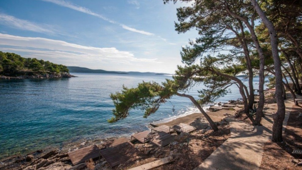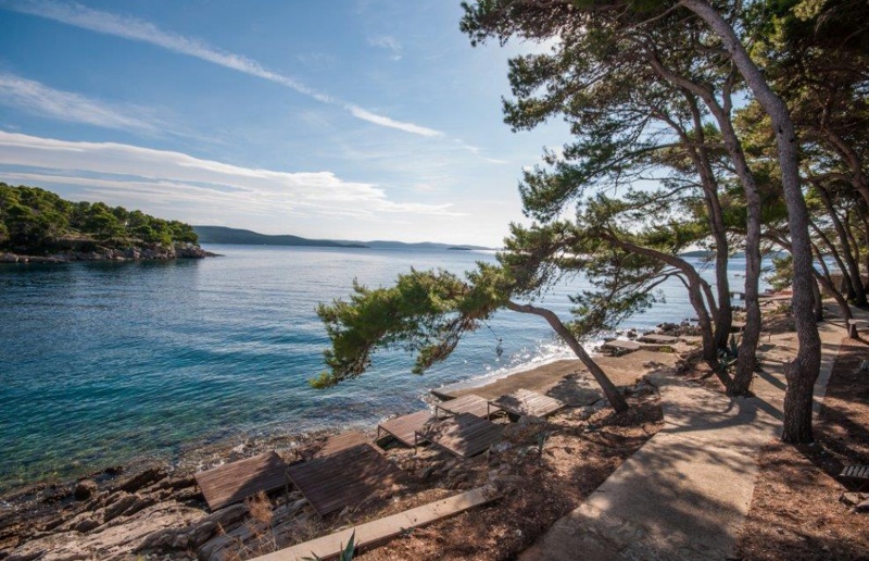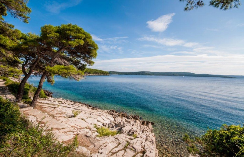 Plaža: skalnata in delno betonirana, oddaljena 50 m, lepa peščena plaža Sakarun, oddaljena cca. 5 km.