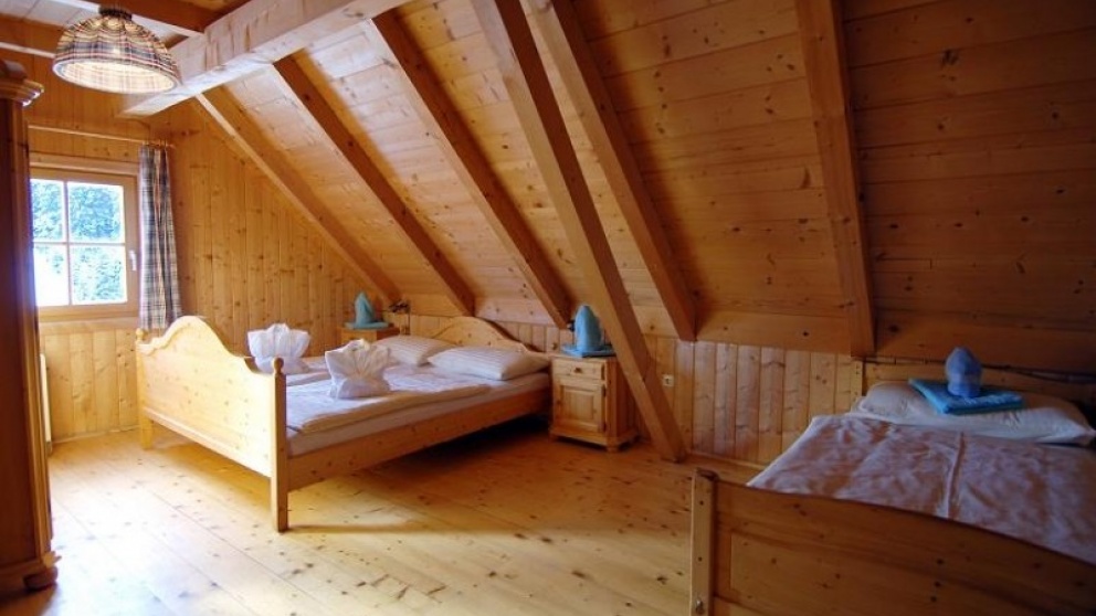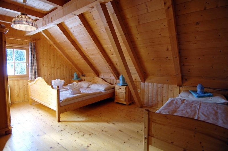 - Visoka klet: 2 sobi z zakonsko posteljo (sobe imajo okna), savna s tušem.