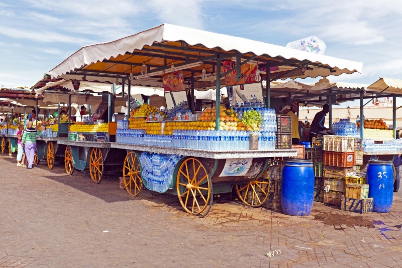 Zajtrk. Zgodaj zavijugamo preko Visokega Atlasa in prečkamo slavni prelaz Tizi n’Tichka. Vstopimo v kraljevo mesto Marakeš, južni biser Maroka. Obiščemo mestno središče okoli znamenitega trga Jemaa el Fna. Le ta je spodbudil UNESCO, da se je porodila ideja o mojstrovinah ustne in nesnovne dediščine človeštva in kot tak je bil tudi prvi zaščiten. Že od nekdaj namreč trg vsak večer preplavi kaotičen vrvež. Ob pripovedovalcih zgodb, krotilcih kač in opic, glasbenikih in plesalcih, pulilcih zob in vedeževalkah nam zagotovo ne bo dolgčas! Za lastno preseganje predlagamo polžjo juhico za lahko noč. Nočitev. (H*, Z)