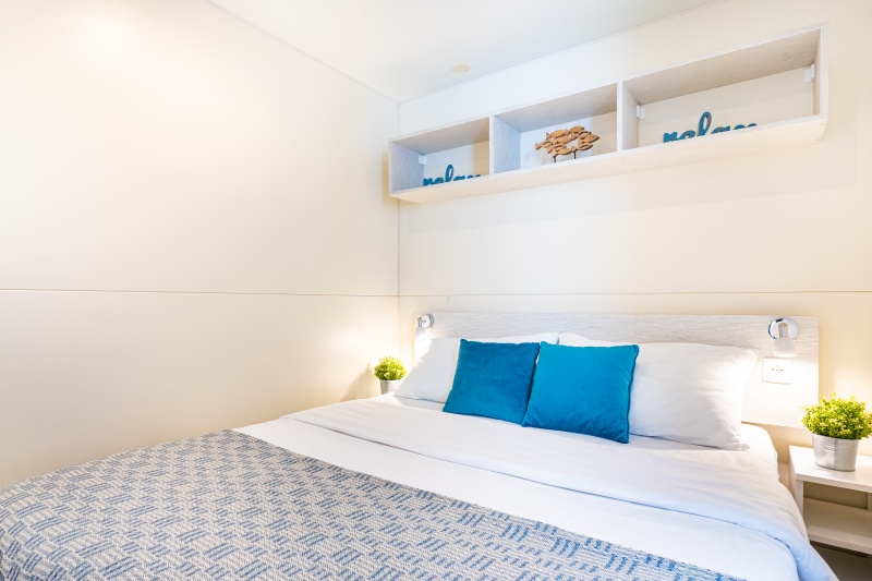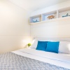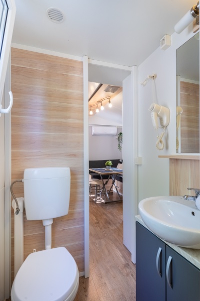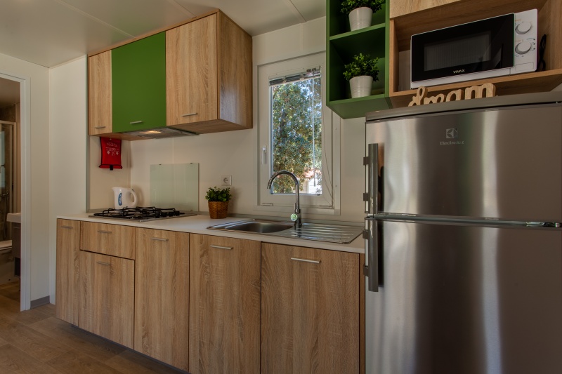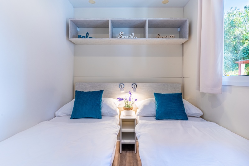 - MH 4-6 SUPERIOR: 34 m², za največ 4 odrasle osebe in 2 otroka do 12 let; dnevni prostor z možnostjo ležišča (za dva otroka), mizo in opremljeno kuhinjsko nišo, hladilnik, kuhalna plošča, mikrovalovna pečica, grelnik za vodo, sat. TV, klimatska naprava, spalnica z zakonskim ležiščem, spalnica z dvema ločenima ležiščema, dve kopalnici s prho, terasa opremljena z vrtno garnituro.