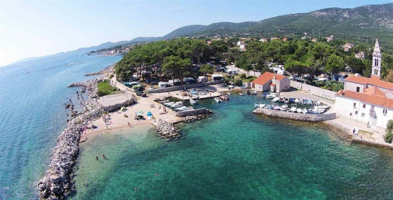 Na začetku otoka Mali Lošinj se na severni strani kraja Nerezine nahaja kamp Rapoća, mobilne hišice v kampu Rapoća. Plaža je delno skalnata in delno prodnata, na njej najdete urejena betonirana mesta za sončenje. Le 50 m stran je plaža za pse.