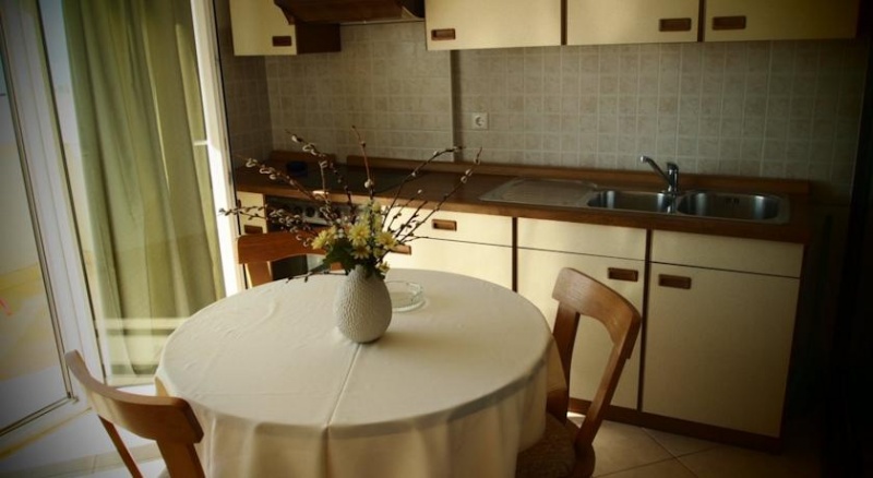 Apartmaji: klima, dnevna soba s kavčem, satTV, kopalnica s prho, popolnoma opremljeno manjšo kuhinjo z jedilnim predelom ter balkon s pogledom na morje.
