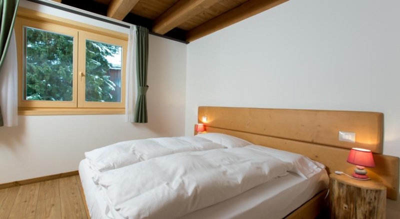 - 1/6 trisobni apartma: soba z zakonsko posteljo ali dvema ločenima ležiščema, niša v mansardi z dvema ločenima ležiščema, dnevni prostor s kuhinjo, jedilnim kotom in raztegljivo zakonsko posteljo, TWC. Nekateri apartmaji so mansardni.