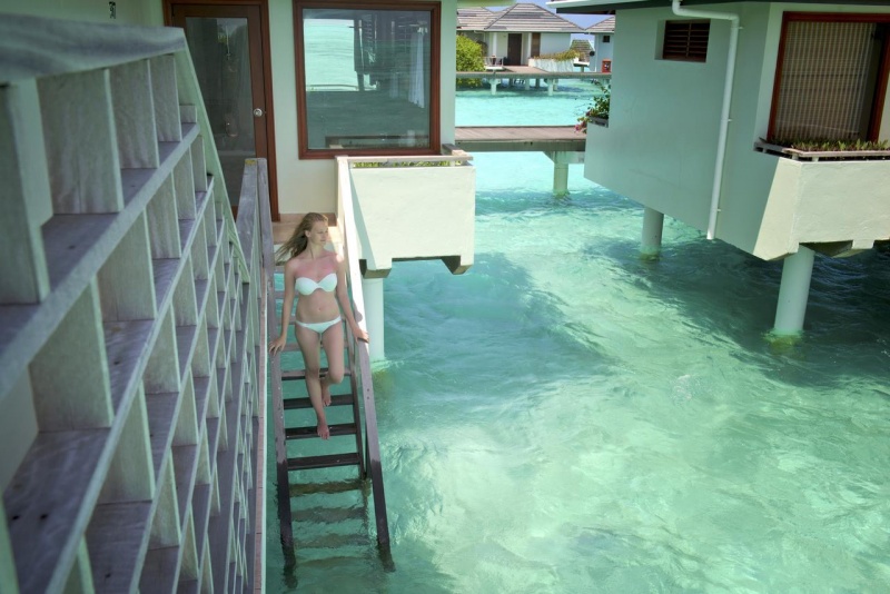 - Nadvodna vila: preko pomola so s kopnim povezane nadvodne vile, velika cca 73 m2, prostorna in razkošno opremljena. Vsaka vila ima lastno stopnišče z neposrednim dostopom do morja. Vključuje wi-fi, klimatsko napravo, TV, mini-bar, telefon, sef, prostor za pripravo kave/čaja, kopalnico s kadjo in zunanjim tušem, sušilec za lase, terasa s ležalniki. Maksimalna zasedenost sobe: 2 odrasli osebi in 1 otrok