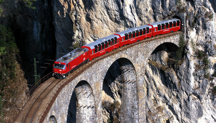 2. dan: Po zajtrku bomo vstopili na vlak in se odpeljali v Švico. Vozili se bomo po slavni progi Bernina Express, ki je uvrščena na Unescov seznam. Proga vodi čez 196 mostov, skozi 55 tunelov, čez gorski prelaz Bernina, najvišjo točko pa doseže na postaji Ospizio Bernina na višini 2253 m, blizu vrha Piz Bernina, ki je s 4049 m najvišji vrh Vzhodnih Alp. Doživetja, razgledi in narava, ki jo bomo srečevali na naši poti so edinstveni! Peljali se bomo le po delu trase; izstopili bomo v St. Moritzu, mondenem turističnem središču. Sprehodili se bomo po mestu, imeli prosto, nato bomo nadaljevali proti mestu Chur, ki je najstarejše švicarsko mesto in sedež kantona (pokrajine) Graubünden. Sprehodili se bomo po starem mestnem jedru, mimo mogočne romanske katedrale, cerkve sv. Mihaela in številnih meščanskih stavb. Vožnja v hotel, namestitev, večerja in prenočitev.