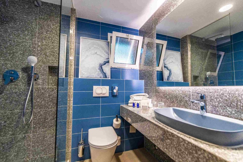 Nastanitev: NOVO moderno opremljeni apartmaji tip B2-4 (30-40m2); v pritličju ali prvem nadstropju, spalnica, dnevna soba z raztegljivim dvosedom, klima, kuhinjska niša z mikrovalovno pečico, hladilnik z zmrzovalnikom, aparat za kavo, grelnik vode, kopalnica s tušem, sušilec za lase, LCD TV, sef za prenosni računalnik, balkon.